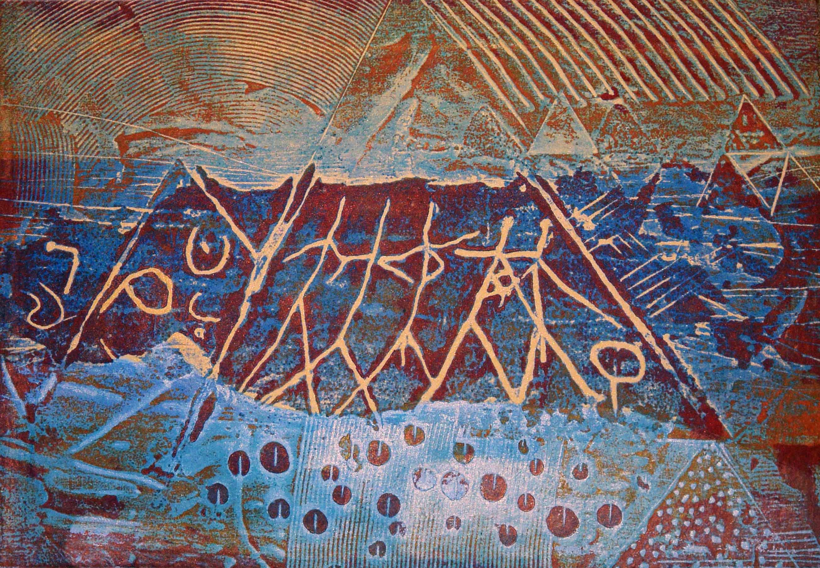 tableaux : acrylique, pigments et minéraux / gravures carburandum / sculpture en bois et en bronze