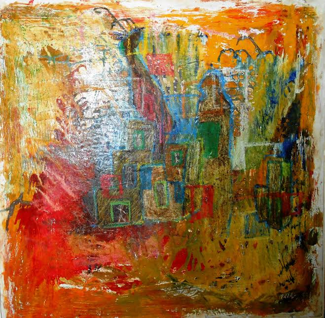 TECHNIQUE MIXTE SUR TOILE : ACRYLIQUE, CRAIE, PASTELS