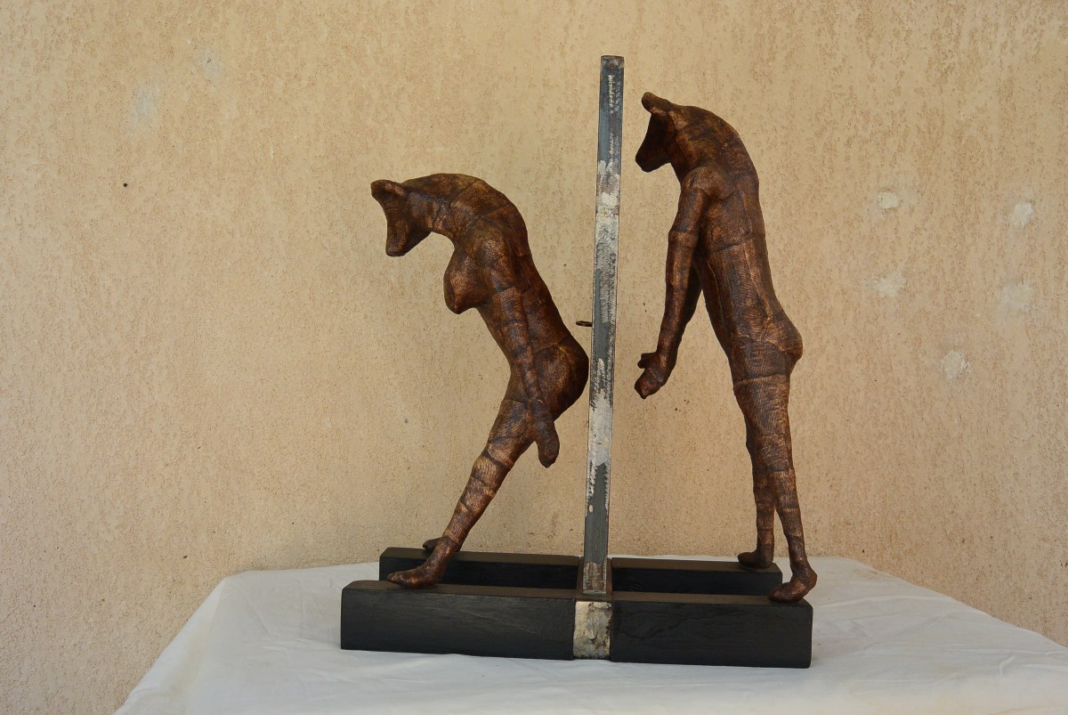 mamady seydi palabres) (10) Publié 12 novembre 2015 à 3872 × 2592 dans Mamady Seydi « Palabres » du 01.12.15 au 15.12.15 ← Précédent Suivant → 4P/Titre (Wolof) : kiy wut fumu fanaan ak kiy wut ku ko wettali warnagno mana deggoo. (Français) : – Celui qui cherche ou passer la nuit et celle qui veut de la compagnie devraient pouvoir s’entendre. Dimensions: 50 x 25 x 65 cm