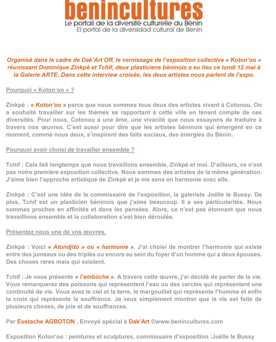 presse benin culture Publié 7 juin 2015 à 2351 × 2904 dans presse & bio : ZINKPE « Urban Mystic » 16 juin AU 15 SEPTEMBRE 2015 ← Précédent Suivant →