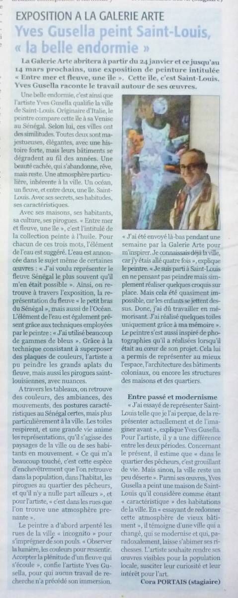 article gusella le soleil Publié 23 janvier 2015 à 1043 × 2615 dans 5 YVES GUSELLA : « Entre fleuve et mer, une île » du 24 janvier au 14 mars 2015 ← Précédent Suivant →