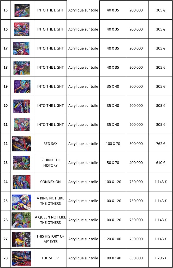 Kifouli et Wabi Dossou » FOULTITUDE » liste de prix