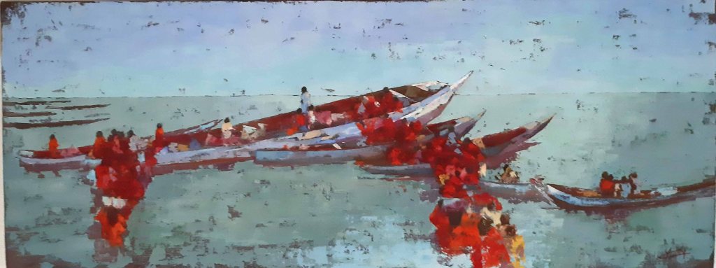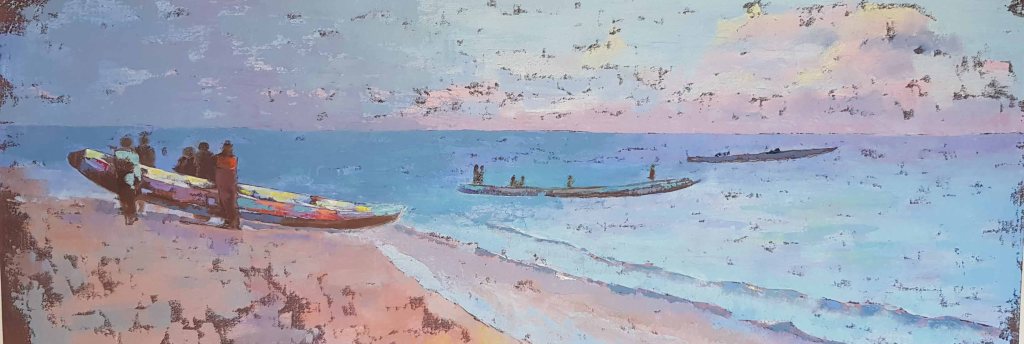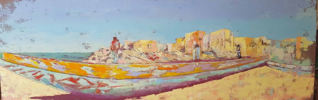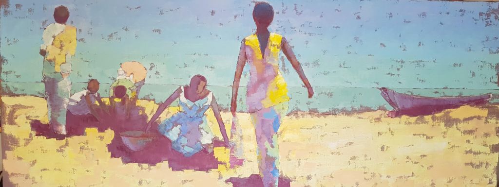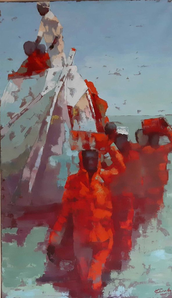 « Le soleil omniprésent, les scènes de la vie quotidienne, la pêche, l’élégance des femmes, l’agitation permanente exacerbent toujours ma sensibilité. De ces scènes, je garde des impressions. J’essaie de les restituer sur ma toile où la couleur témoigne de l’aspect positif de ce pays en devenir.»